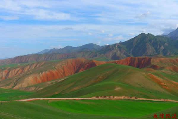 在卓尔山顶视野开阔,四周没有遮拦,山对面是一山尽览四季景色的牛心山,左右两侧分别是拉洞峡和白杨沟风景区,背面是连绵起伏的祁连山。卓尔山是祁连山的一条支脉,呈现丘陵状的草原风光,而其本身地貌又属于丹霞地貌(藏语称“宗穆玛釉玛”,意为美丽的红润皇后),山体露出的地方都是赤红的砂岩,与碧绿的草原层叠交错,非常漂亮。加上山脉两侧的林海、油菜花、村庄、县城,景色层次感很强,深受摄影师喜爱。